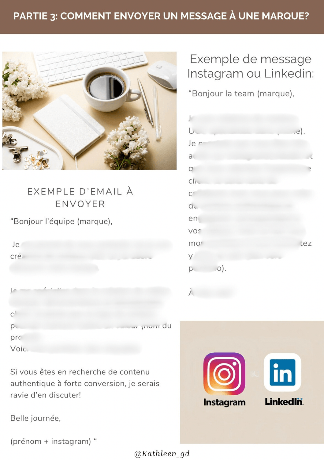 ✅ Tu sauras comment te faire contacter par les marques qui ont besoin de toi en tant que créateur UGC, être repéré ou leur écrire de façon impactante et personnalisée pour travailler avec elles.
